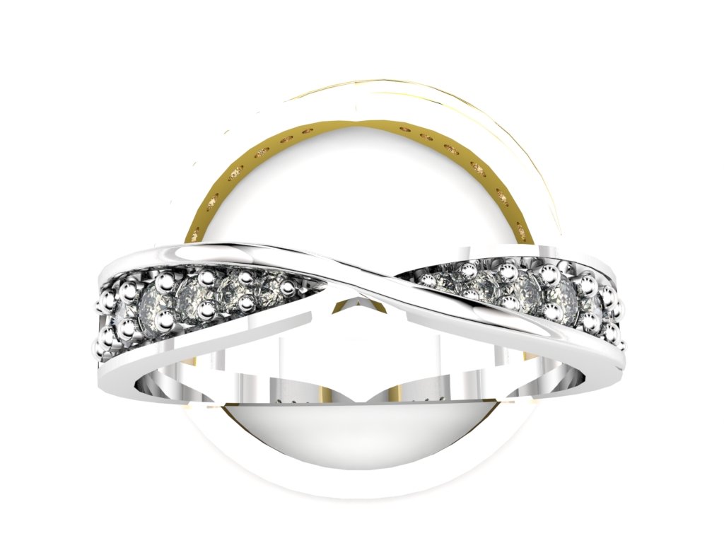 Tento elegantní fashion prsten zaujme svým originálním designem, ve kterém šína přechází do jemného zkřížení. Výsledný motiv je podtržen drobnými kamínky, které jsou precizně zasazeny a dodávají prstenu jemný třpyt.