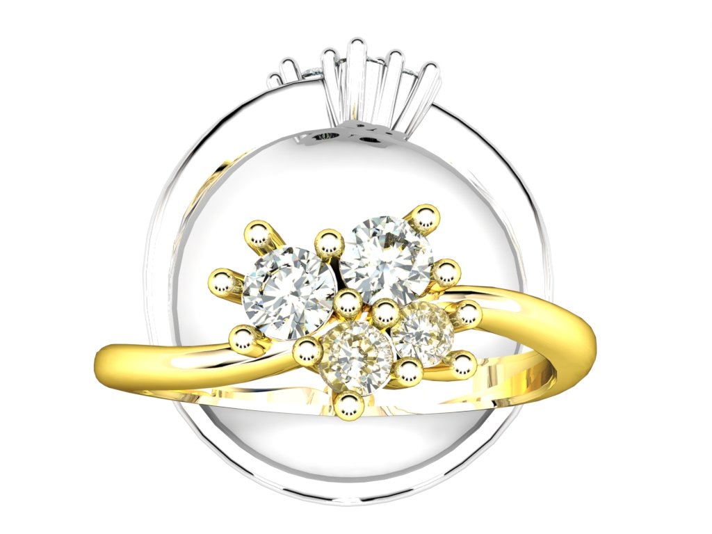 Tento elegantní fashion prsten je vytvořen pro ženy, které preferují jednoduchost a jemnou eleganci. Dominantou šperku jsou čtyři precizně broušené kulaté kameny, které jsou usazeny v korunce s jemnými krapnami. Hladká šína prstenu vytváří harmonii mezi minimalismem a zářivým třpytem kamenů, čímž prsten působí lehce a nadčasově.
