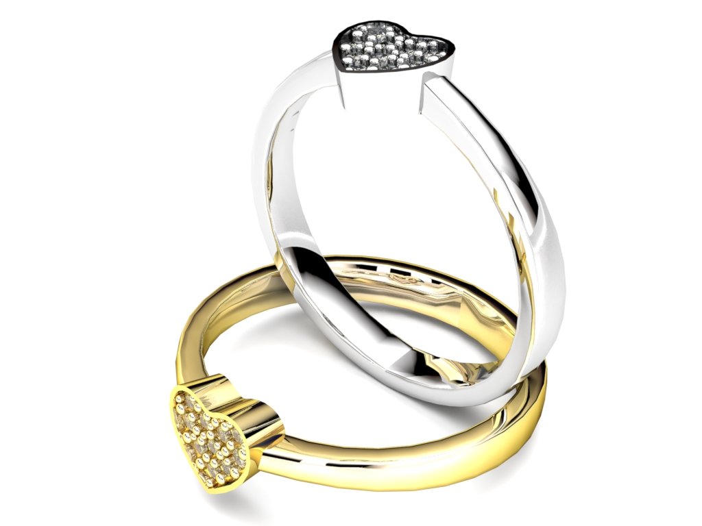 Tento stylový prsten je zdoben centrálním srdíčkem, které je bohatě osázeno drobnými kamínky. Jednoduchá a hladká šína dokonale ladí s výrazným středovým motivem, čímž vytváří harmonický a elegantní celek. Prsten je dostupný ve variantách z bílého i žlutého zlata, díky čemuž si můžete vybrat ten, který vám nejlépe vyhovuje.