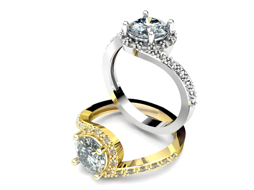 Zásnubní prsten "s halo osazením" je dokonalým spojením elegance a luxusu. Centrální kámen, obklopený drobnými zirkony v halo stylu, vytváří nádherný třpyt a hloubku. Jemné zirkony pokračují podél šíny prstenu, což dodává šperku harmonický a bohatý vzhled. Tento design je symbolem nekonečné lásky a krásy, která přetrvá věky.