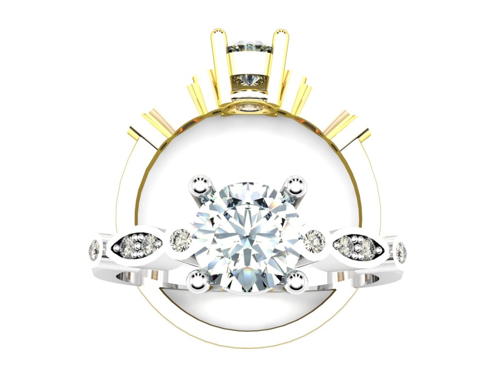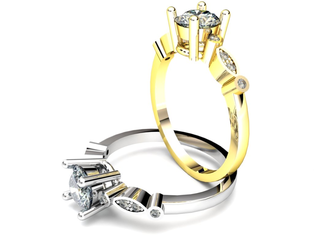 Tento zásnubní prsten "s geometrickými detaily" zaujme svým moderním a sofistikovaným vzhledem. Centrální kámen je výrazně zasazen do korunky s jedinečnými liniemi, které přidávají šperku na originalitě. Jemné ozdobné prvky na šíně, doplněné drobnými zirkony, dotvářejí harmonii mezi elegancí a inovativním stylem. Tento prsten symbolizuje jedinečnost každého vztahu a jeho pevné základy.