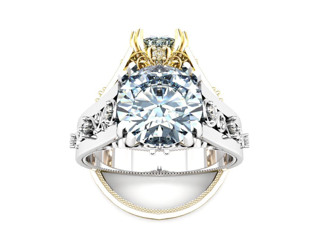 Tento zásnubní prsten "s ornamentálním designem" je dokonalou kombinací elegance, jemnosti a propracovaných detailů. Centrální kámen je výrazně zasazen do korunky a podtržen ornamentálními vzory, které zdobí šínu po celé délce. Tyto jemné detaily dodávají prstenu romantický a sofistikovaný nádech. Každý prvek designu symbolizuje propojení lásky a krásy, které jsou jedinečné pro každý vztah.