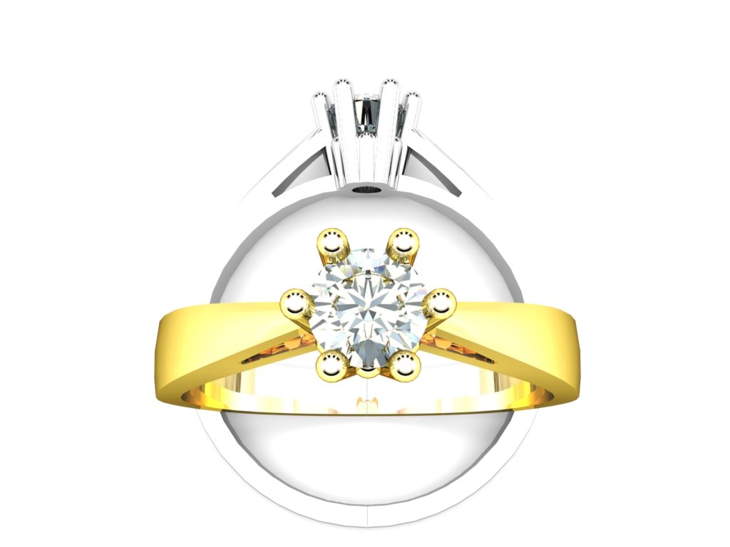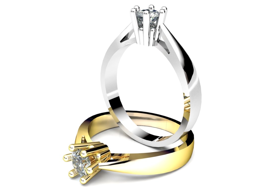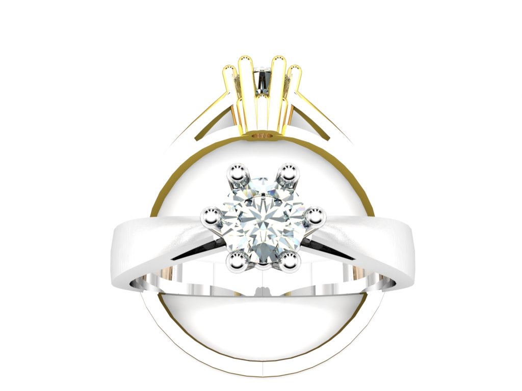 Tento zásnubní prsten "s dělenou šínou a jemnou korunou" je ukázkou jednoduché elegance a nadčasového designu. Šína prstenu se při přiblížení ke korunce jemně rozděluje, čímž vytváří lehkost a moderní vzhled. Centrální kámen je držen šesti dlouhými krapnami, které jsou doplněny šesti menšími krapnami vyplňujícími mezery. Tato jemná korunka podtrhuje třpyt kamene a zvýrazňuje jeho krásu.